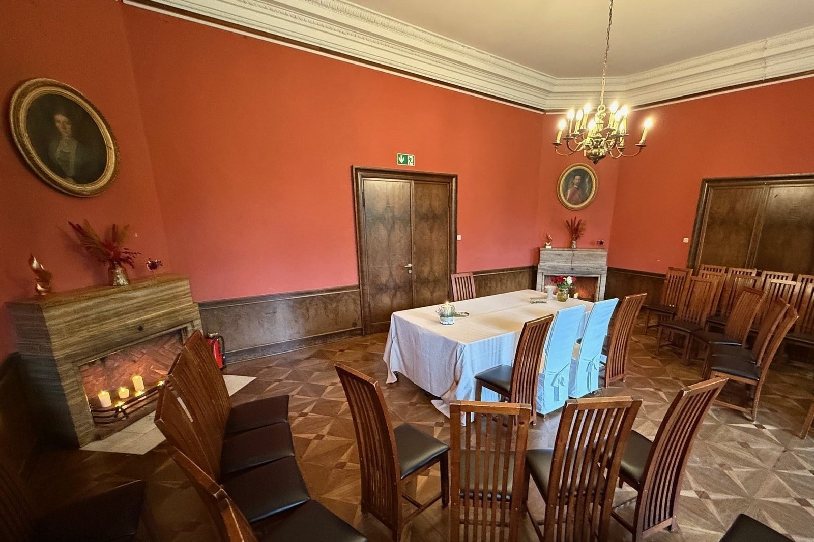 Inmitten einer wunderschönen Parkanlage mit altem Baumbestand und kleinen Teichen liegt das Schloss Buldern, auf dem im 18. und 19. Jahrhundert die Adelsfamilie von Romberg mit ihrem bekanntesten Spross Gisbert – auch bekannt als der „Tolle Bomberg“ – lebte. Im edlen Trauzimmer mit hohen Decken, Kerzen und offenem Kamin sind Trauungen nach Absprache mit dem Standesamt jeweils nur samstags möglich. Bis zu 50 Gäste finden in den großzügigen Räumlichkeiten Platz. Das Trauzimmer ist nicht barrierefrei erreichbar, sondern lediglich über 7 Stufen zu erreichen. Ein Gläschen Sekt, für das die Freunde des Brautpaares sorgen, kann nach der Trauung im überdachten Eingangsbereich und auf der Terrasse genossen werden. Der Schlosspark bietet zudem eine herrliche Kulisse für märchenhafte Hochzeitsfotos.