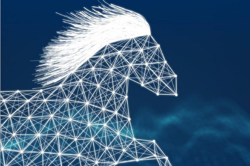 Logo der Stadt Dülmen: Zeichnung eines rennenden Pferdes über dem Dülmen-Schriftzug