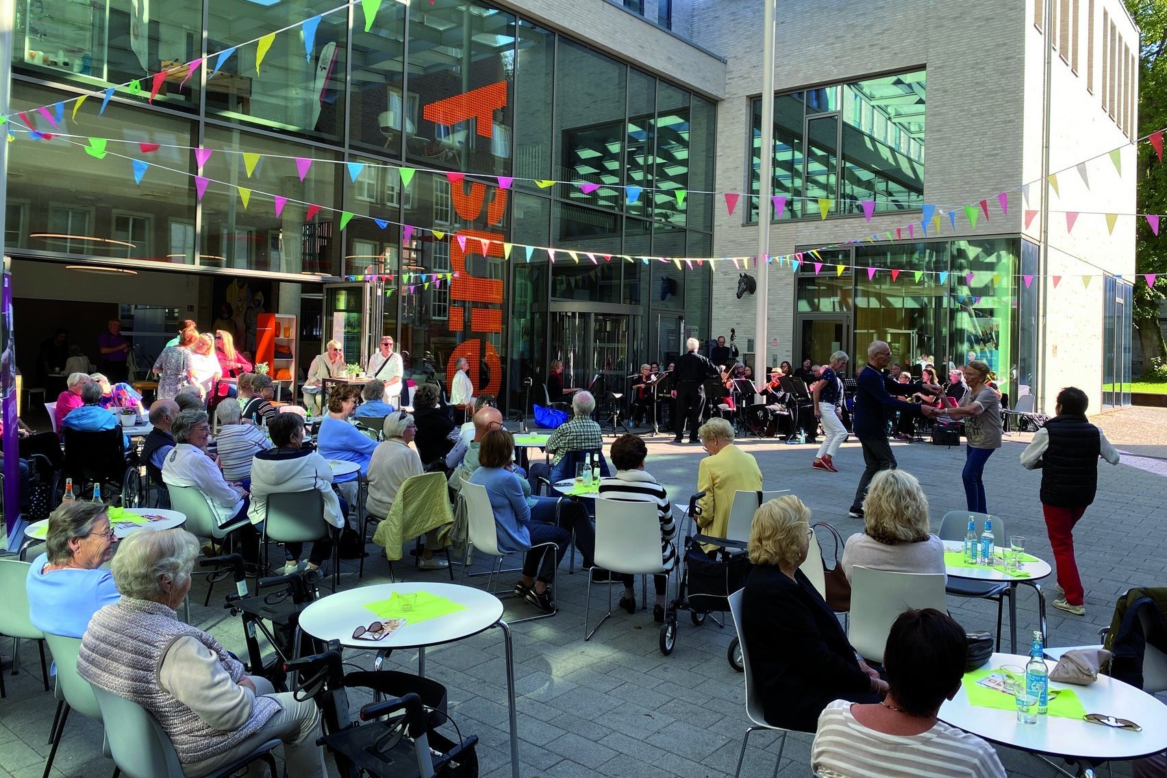 „Bei unserem Schwof im vergangenen Jahr herrschte eine wunderschöne Atmosphäre unter dem Glasdach. Viele Gäste haben getanzt, geschunkelt und die schöne Stimmung genossen“, berichtet MGH-Koordinatorin Jennifer Stocksley: „Egal ob alt oder jung, mit oder ohne Handicap oder Demenz – wir freuen uns über alle, die gemeinsam einen Nachmittag mit viel Musik und guter Laune erleben möchten. – Bewegung ist ausdrücklich erwünscht“.