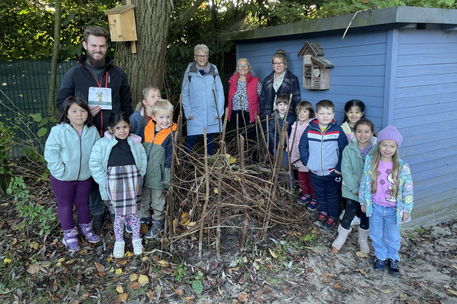 Insektenhotels und Nistkästen bauen, Blumenzwiebeln pflanzen, Maisenknödel für den Winter herstellen, Laubhaufen für Igel aufschütten: Das Kinderhaus am Luchtbach hat in den vergangenen Monaten richtig angepackt für die Natur. 20 Kinder sowie ihre Erzieherinnen nahmen an einem Projekt des Naturschutzbundes (NABU) teil. Das Kinderhaus darf sich jetzt über das Zertifikat „Naturnahe KiTa“ freuen.