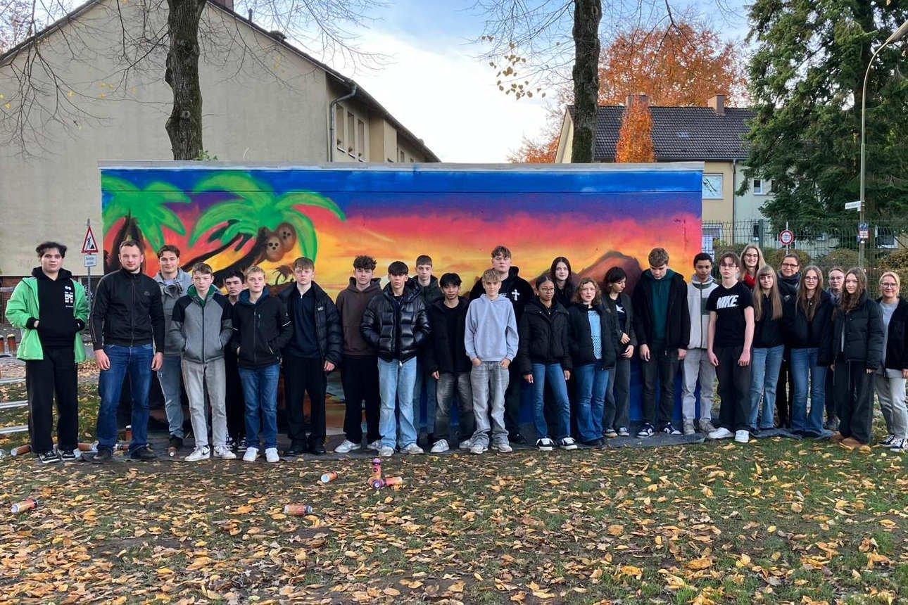 Spraydose gezückt und los geht's: Der neue Sportanlage "An den Wiesen" ist um eine Attraktion reicher. In dieser Woche hat die Stadt eine Wand für freies Graffiti freigegeben. Damit entsteht ein offener Raum für kreative Gestaltung und Jugendkultur: ein Ort, an dem legal gesprayt werden darf. Zur Einweihung fand gemeinsam mit den Graffiti-Experten des Unternehmens "Lackaffen" ein Workshop vor Ort statt. Schülerinnen und Schüler der Hermann-Leeser-Schule gestalteten erste Kunstwerke auf Leinwand und auf der neuen Wand. Unter professioneller Anleitung lernten sie den Umgang mit Spraydosen, Farben und Formen. Das Projekt ist Teil des Bundesprogramms „Zukunftsfähige Innenstädte und Zentren“.
