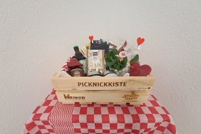 Die Valentinskisten kosten jeweils 35 € + 15 € Holzkistenpfand. Die rustikale Holzkiste kann später für weitere Picknicks passend gefüllt und mitgenommen werden.