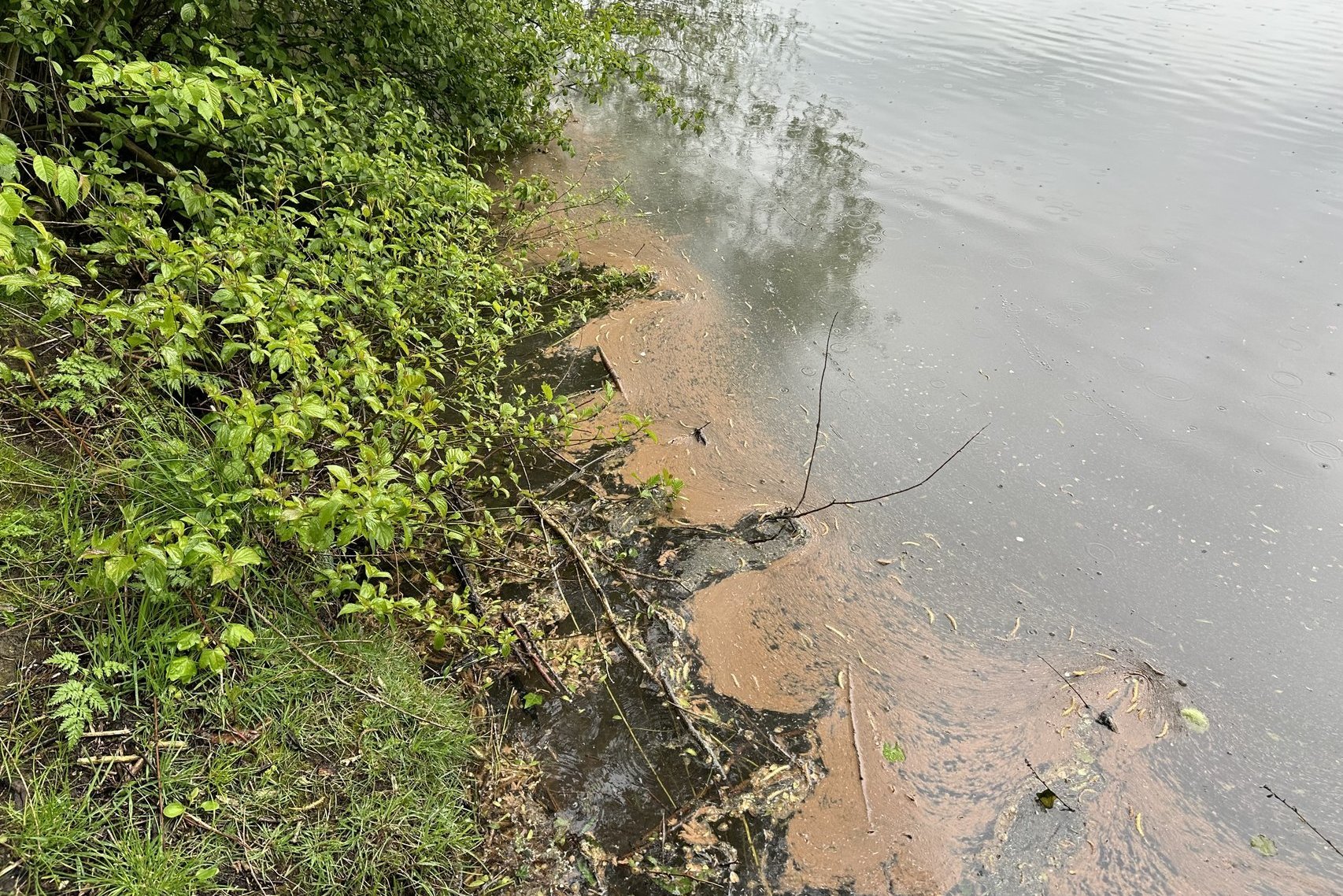 Teile des Sees sind durch die Alge noch immer rötlich eingefärbt.